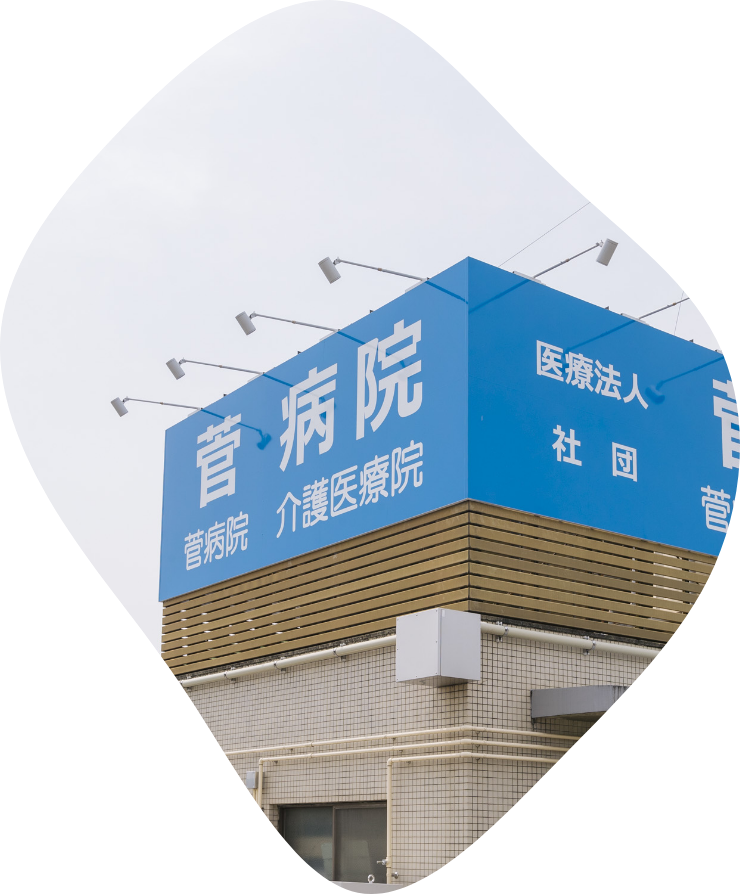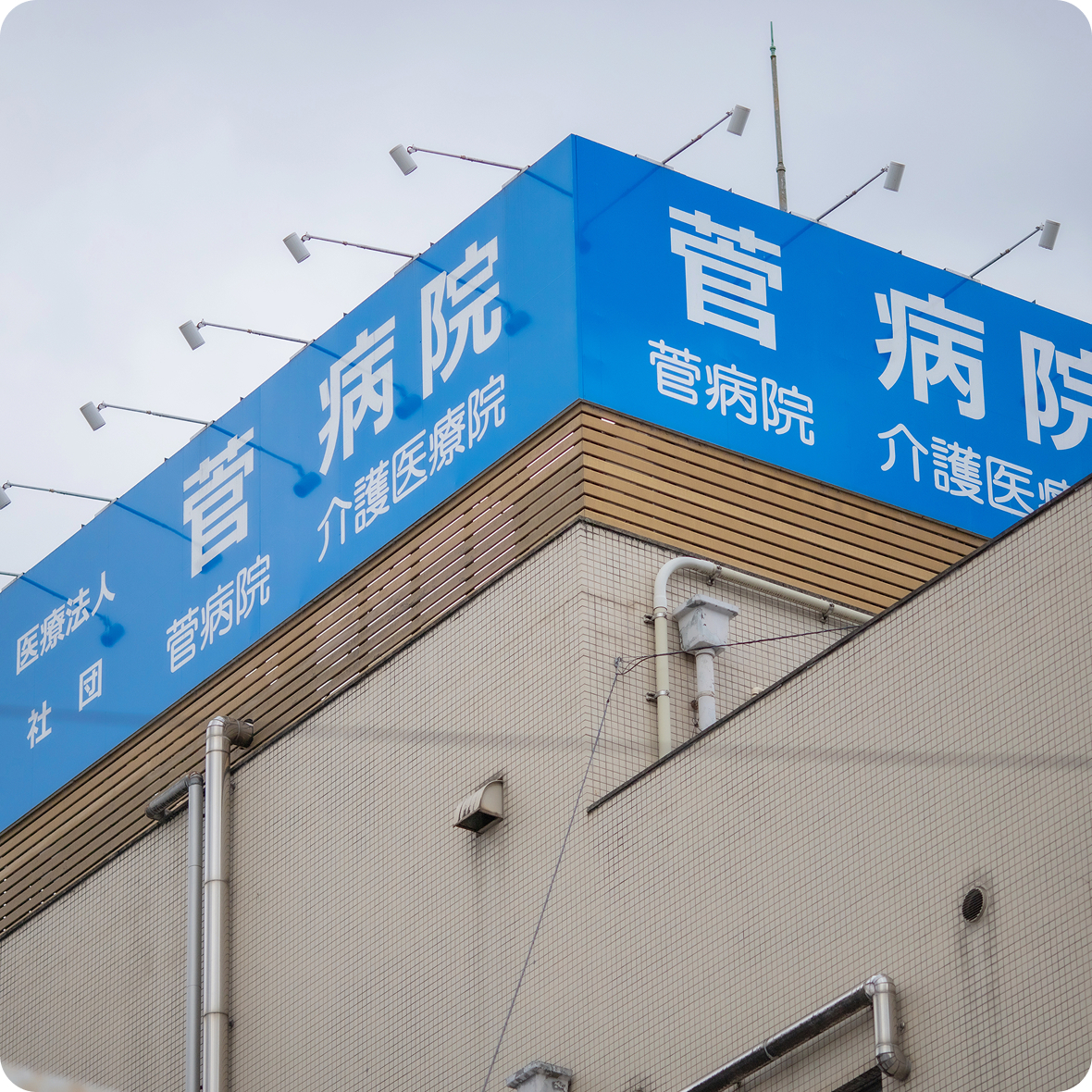 菅病院は、昭和45年の開院以来、地域の皆様の健康を支える医療機関として歩んでまいりました。医療を取り巻く環境の変化に対応し、令和4年4月には介護療養型医療施設を介護医療院に転換。現在は一般病棟32床、介護医療院27床を有し、地域に根ざした医療サービスを提供しております。